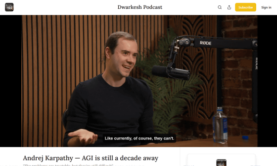 アンドレイ・カーパシー氏はスロバキア系カナダ人の計算機科学者で、テスラでAIおよびオートパイロットビジョンのディレクターを務めたほか、ChatGPTを開発したOpenAIの共同創設者でもある人物です。そんなカーパシー氏が、さまざまな研究者に質問するポッドキャスト・Dwarkesh Podcastに出演し、AIエージェントがしっかり機能するようになるには10年かかるため、AGI(汎用人工知能)の実現には少なくともそれ以上かかるとの見通しを示しました。