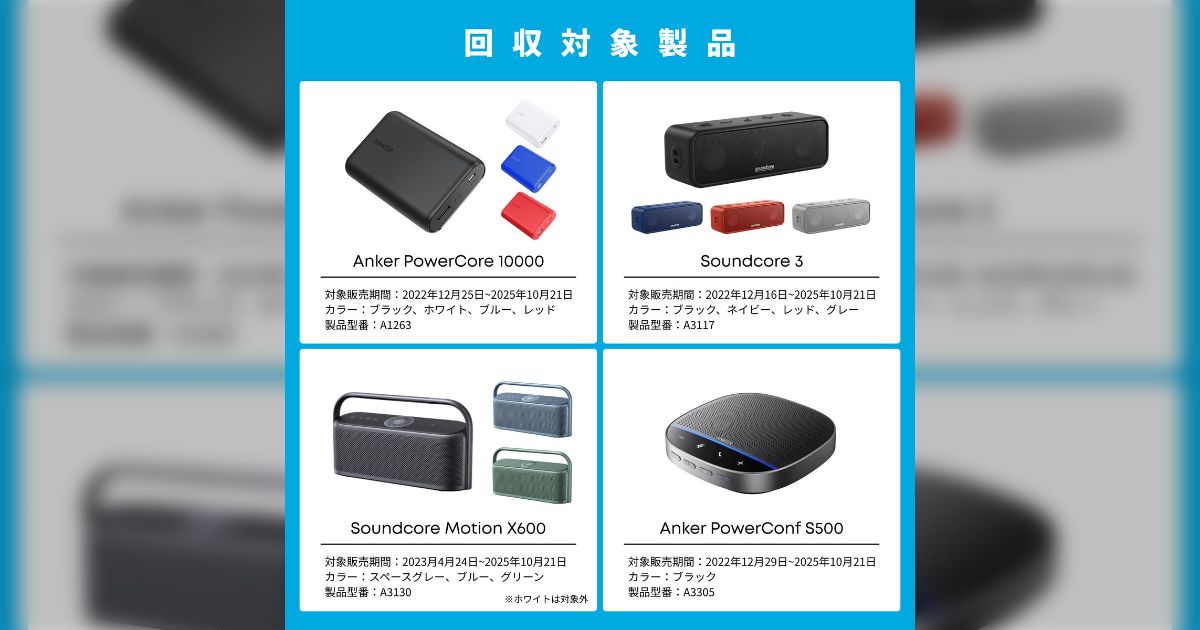 Anker、モバイルバッテリーやBluetoothスピーカーなど4製品を自主回収。国内発火事象を確認したため(PHILE WEB)