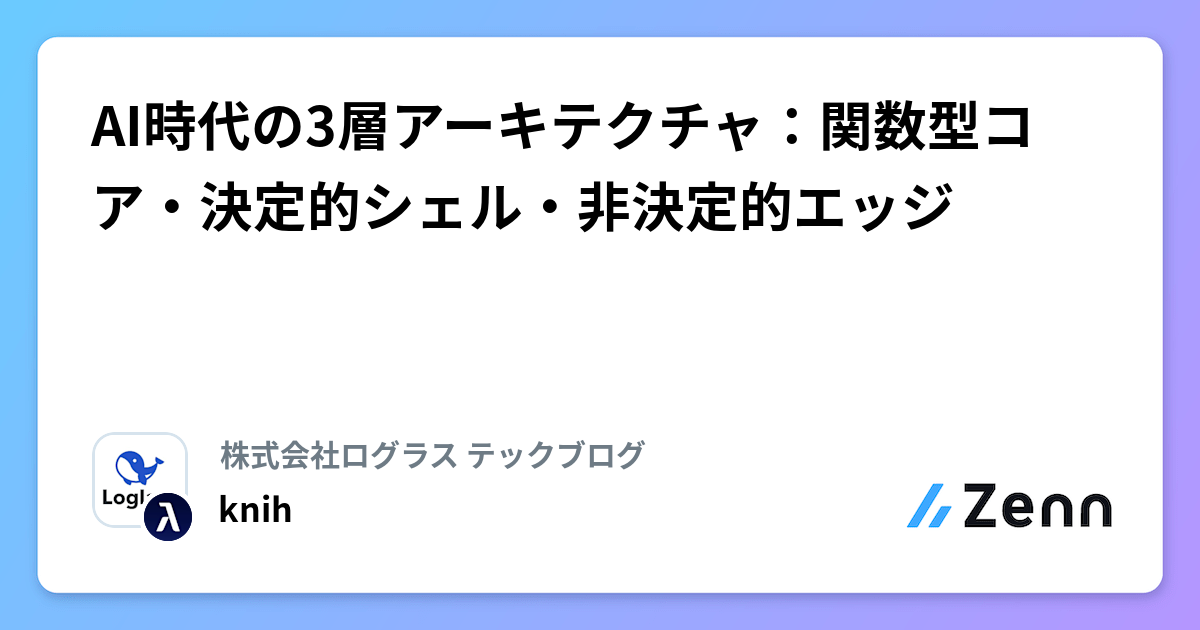 AI時代の3層アーキテクチャ:関数型コア・決定的シェル・非決定的エッジ | 株式会社ログラス テックブログのフィード