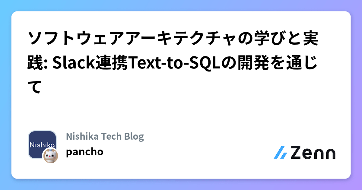 ソフトウェアアーキテクチャの学びと実践: Slack連携Text-to-SQLの開発を通じて | Nishika Tech Blogのフィード
