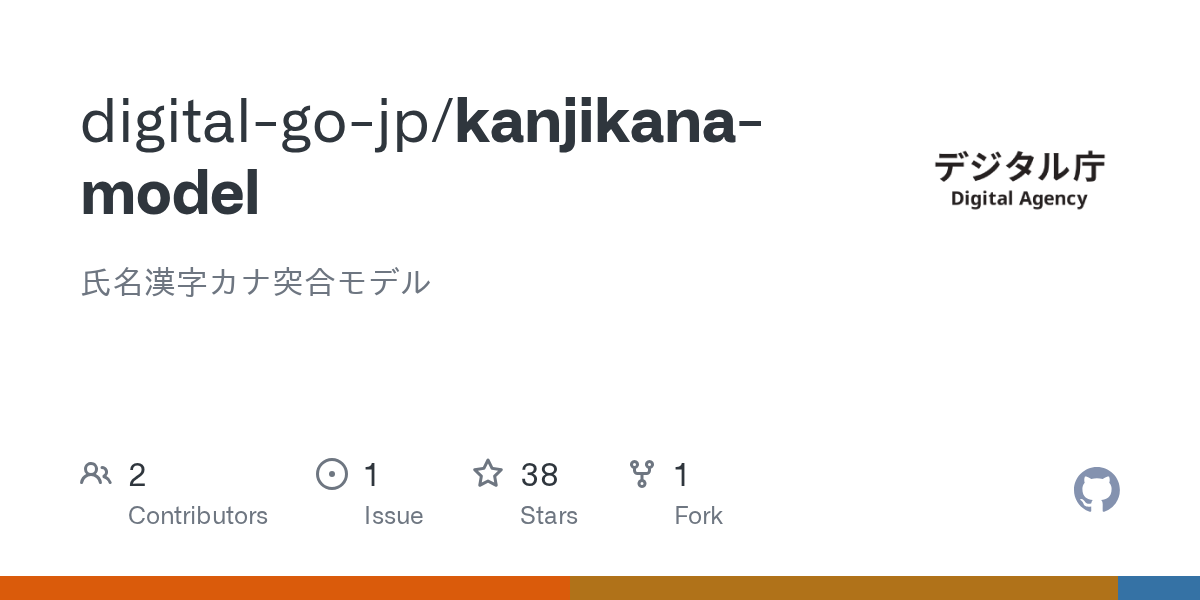 GitHub – digital-go-jp/kanjikana-model: 氏名漢字カナ突合モデル