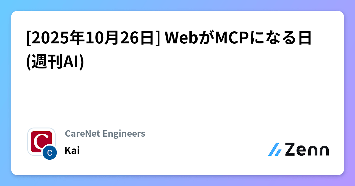[2025年10月26日] WebがMCPになる日 (週刊AI) | CareNet Engineersのフィード