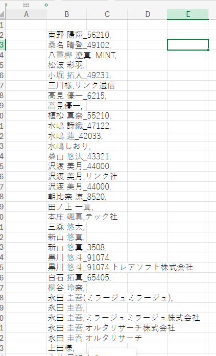 これを全て名寄せして、あらかた名寄せしたい。しかしデータは3,000件ほど。手でスクリーニングして名寄せするのも、なかなか大変です。