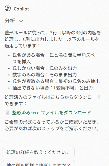 そこでふと思いつきました。Excel の Copilot はなんか上手くやってくれないのか。