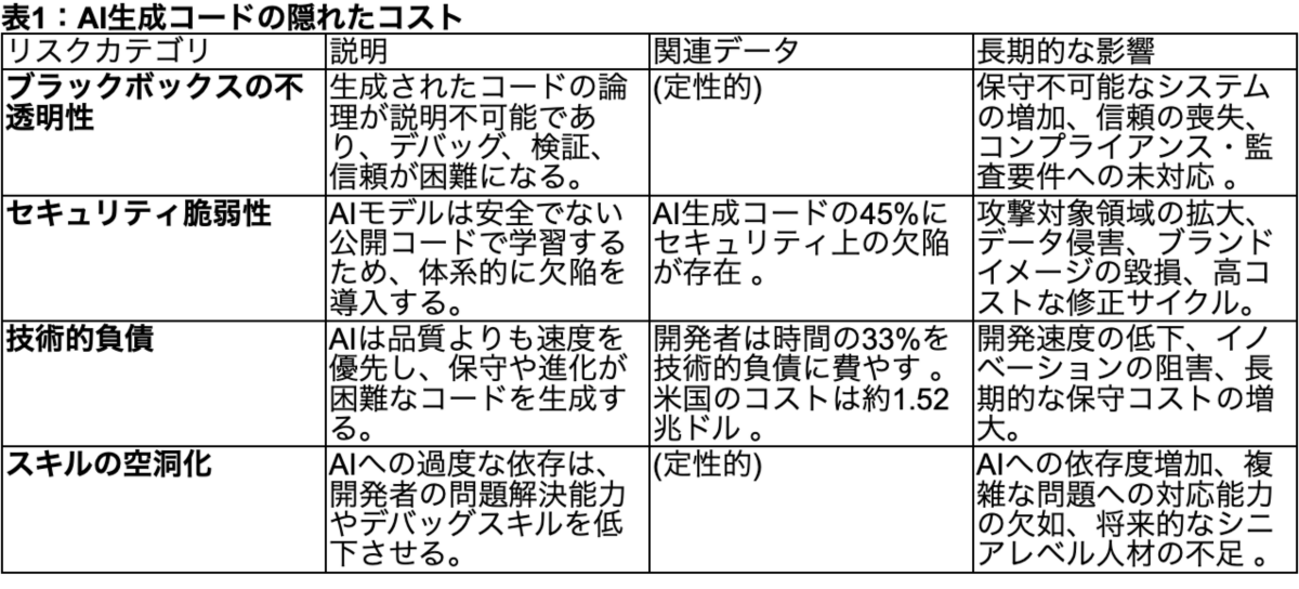I. 導入:創造の新たな日常語 ソフトウェア開発の世界は、今、根本的な変革の渦中にあります。「Vibecoding」という新たな潮流が、その中心にあります。これは、開発者が達成したいことを自然言語で記述し、実装の大部分をAIに委ねるという開発スタイルです 。Gemini Code AssistやGitHub Copilotといったツールがこのパラダイムを牽引し、反復的なタスクを自動化し、プログラミングへの参入障壁を下げることで、かつてないほどの生産性向上を約束しています 。 しかし、このAIによるコード生成の容易さと速度は、保守性、セキュリティ、そして最終的な説明責任という、長期的かつ新たな課…