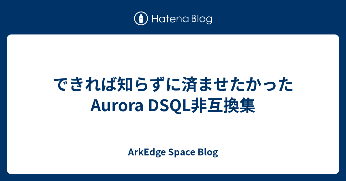 これから Aurora DSQL を触ってみようという方や、私のような DBMS フリークのみなさんの参考になれば幸いです。