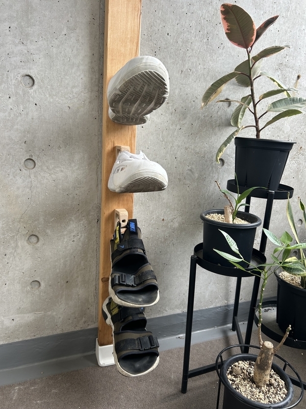 流石に外のスペースにそこそこ値の張るスニーカーを飾る・置いておくのはできない…いつもはサンダルをかけています。