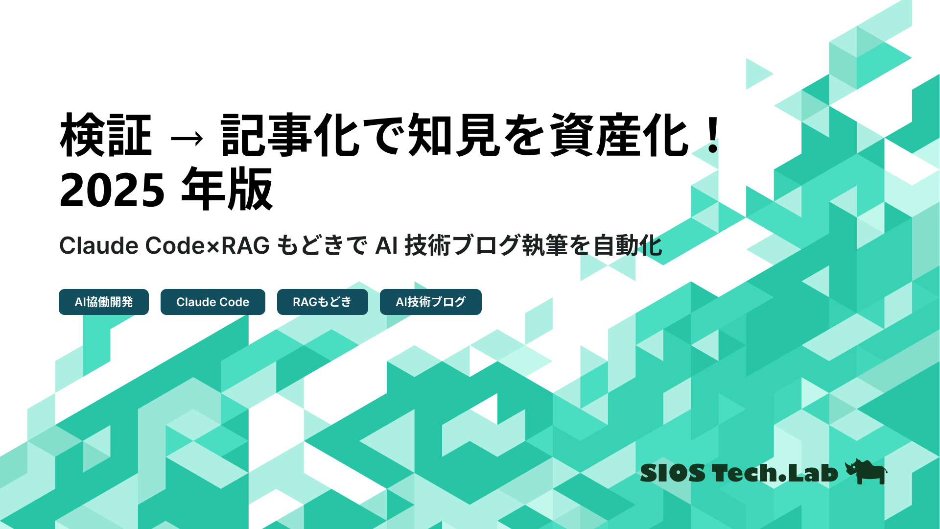 【2025 年版】検証 → 記事化で知見を資産化!Claude Code×RAG もどきで AI 技術ブログ執筆を効率化 | SIOS Tech. Lab