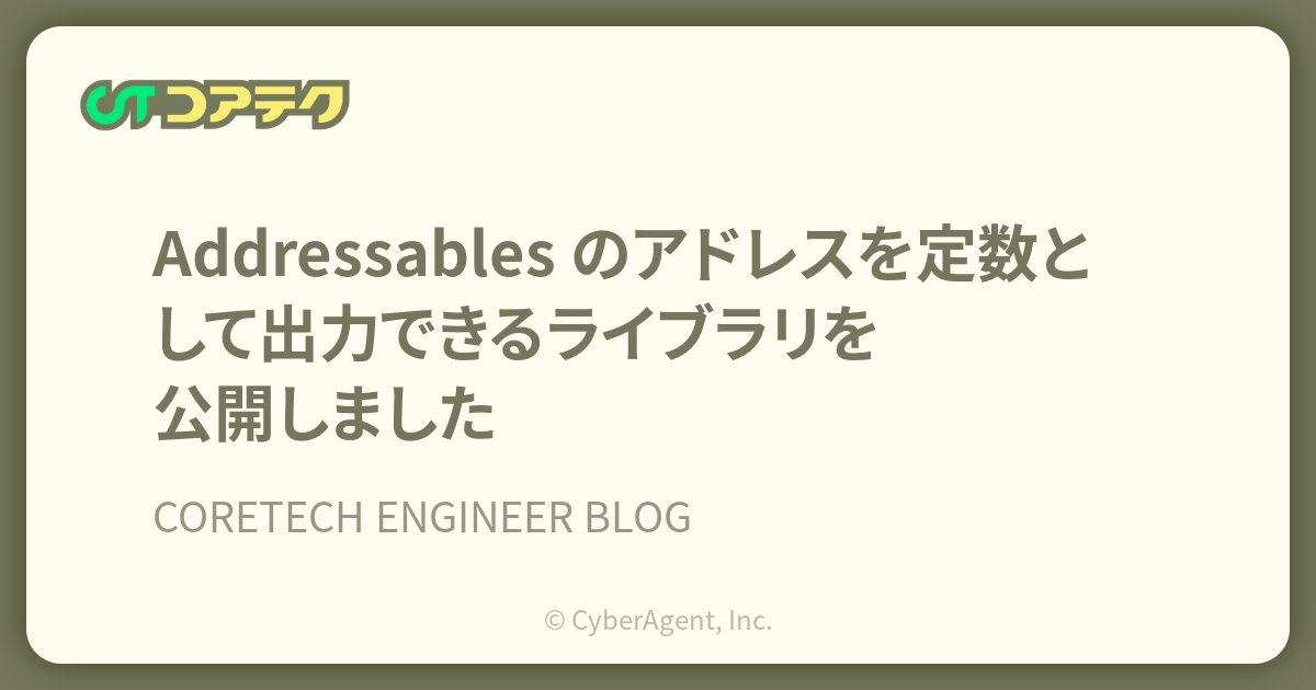 Address Definition Generator を使うことで、型安全性を保ちながら Addressables の利便性を最大限に活用できるようになります。