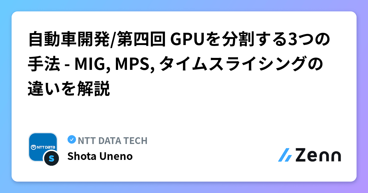 自動車開発/第四回 GPUを分割する3つの手法 – MIG, MPS, タイムスライシングの違いを解説 | NTT DATA TECHのフィード