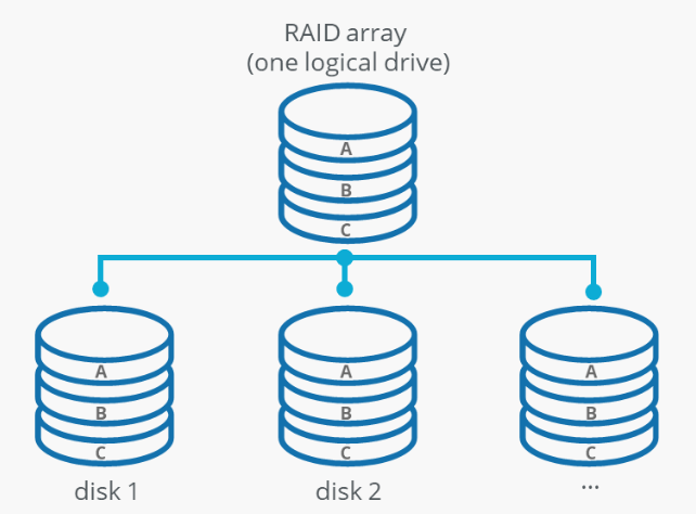 例えば、ディスクは RAID(Redundant Array of Independent Disks)構成で冗長化されます。RAID とは複数のディスクにデータを分散して保存する技術です。これにより、1 台のディスクが故障しても、他のディスクからデータを復元できるため、システム全体の信頼性が向上します。