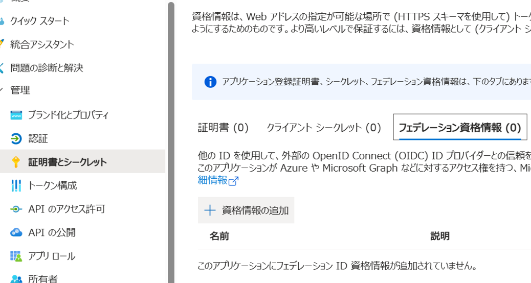 フェデレーション資格情報が追加できていることを確認しましょう。