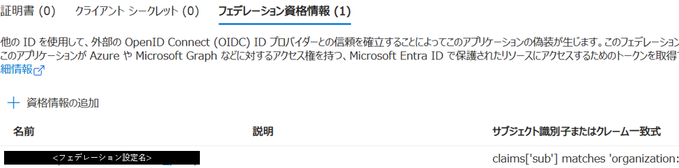 Azure側(Entra ID)でサービスプリンシパルの作成と、フェデレーション資格情報の追加
