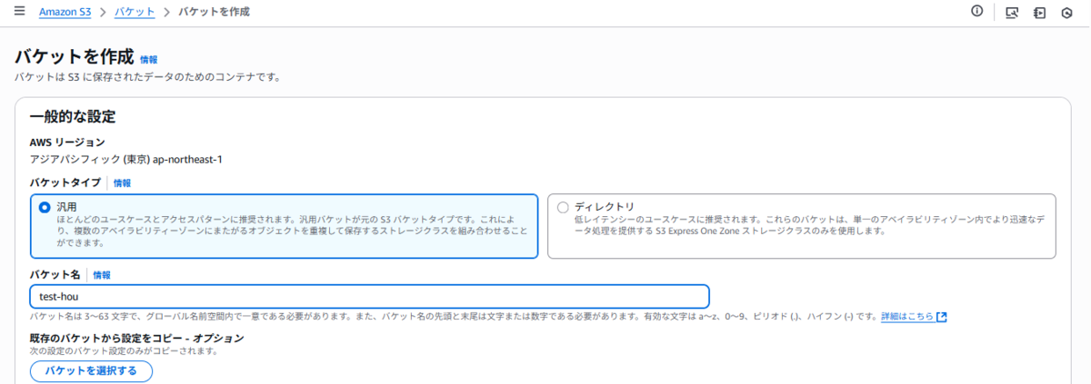 例では test-hou というバケット名を使用します。