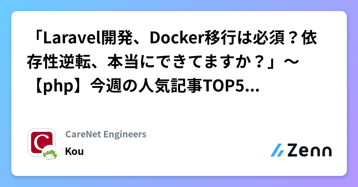 「Laravel開発、Docker移行は必須?依存性逆転、本当にできてますか?」~【php】今週の人気記事TOP5(2025/11/09) | CareNet Engineersのフィード