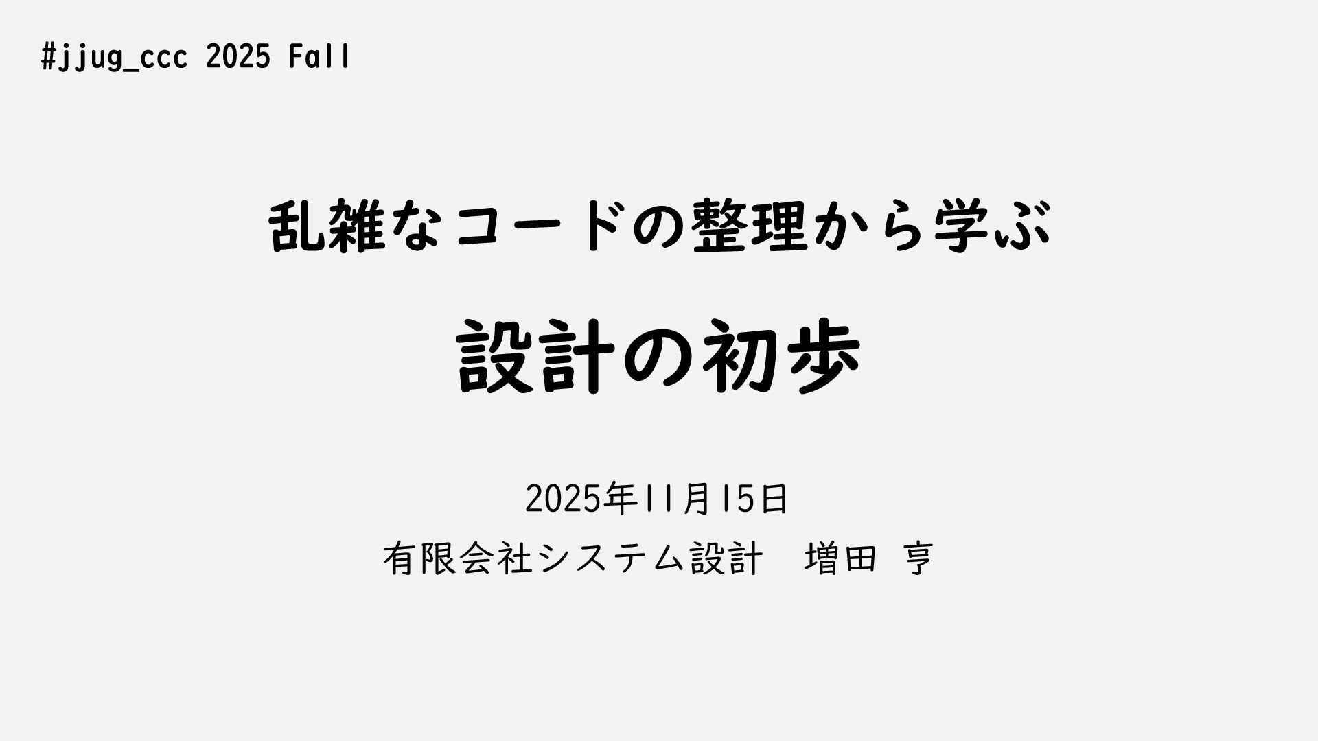 乱雑なコードの整理から学ぶ設計の初歩 2025.11.15 はてなブログ 記事のタイトルとURLをコピーする 乱雑なコードの整理から学ぶ設計の初歩 JJUG CCC 2025 Fall 発表資料 1. 良い設計とはなにか 2. 設計スキルを身に付けるコツ 3. 乱雑なコードを整理する実践技法 – 小さな設計改善 – 大きな設計改善 – 戦略的な設計改善 元の記事を確認する Post Share Hatena LINE RSS feedly Pin it note ターミナルで Azure / AWS / GCP をまとめて扱う「Cloud‑Native Shell」について 前の記事 事業成長を支える"開発の土台"をつくる。——SmartHR プロダクト基盤開発本部の取り組み - SmartHR Tech Blog 次の記事 関連記事 はてなブログ 日本語で使いやすい。おすすめのローカルLLM3選 2025.10.26 はてなブログ お召し列車LV100 上皇陛下から天皇陛下、秋篠宮家などの皆様まで勢揃いしたミニトレインが超絶高貴 あまりにロイヤル過ぎてAIの疑いも 2025.09.21 はてなブログ TypedSql──C# の型システムをクエリエンジンとして「悪用」してみた話 #SQL – Qiita 2025.11.24 はてなブログ 「法務でAIがどこまで使えるか」を測るデータセット、デジタル庁が公開 2025.10.09