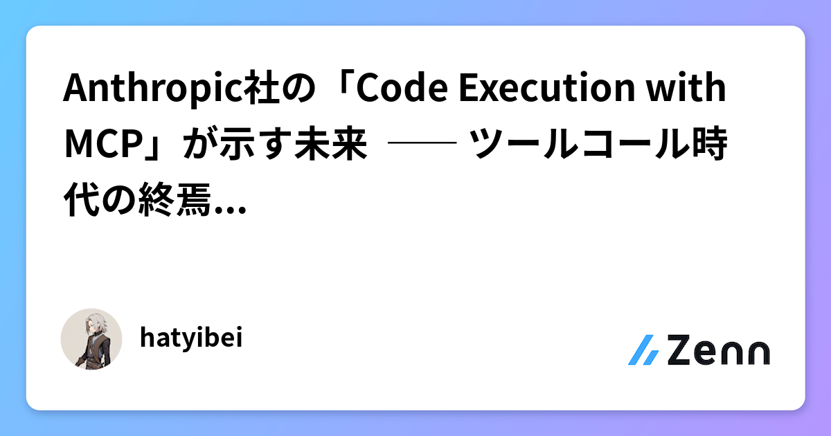 本当に重要なのは「MCPそのもの」ではなく、Anthropicが示した “Code Execution × MCP” という新しい設計思想です。