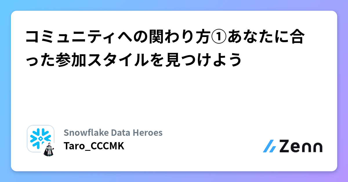 コミュニティへの関わり方①あなたに合った参加スタイルを見つけよう | Snowflake Data Heroesのフィード