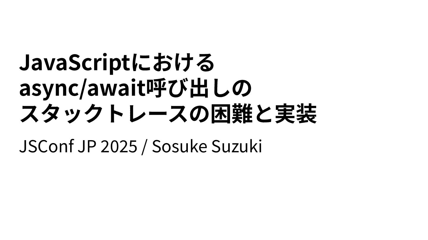 } foo(); fooに対応するバイトコード(イメージ) [ 0] enter … [ 17] call_ignore_result callee:loc5, argc:1, argv:12 [ 22] ret value:Undefined(const0) 通常の関数呼び出しにおける位置情報の取得の例 barでErrorが作成されたと き、コールスタックは foo, bar。 このとき、fooの呼び出しに 対応するスタックフレーム は、foo内でのpc(=17)の情 報を持っている。 通常の関数呼び出しでは、 このpcから位置情報を取得 する。