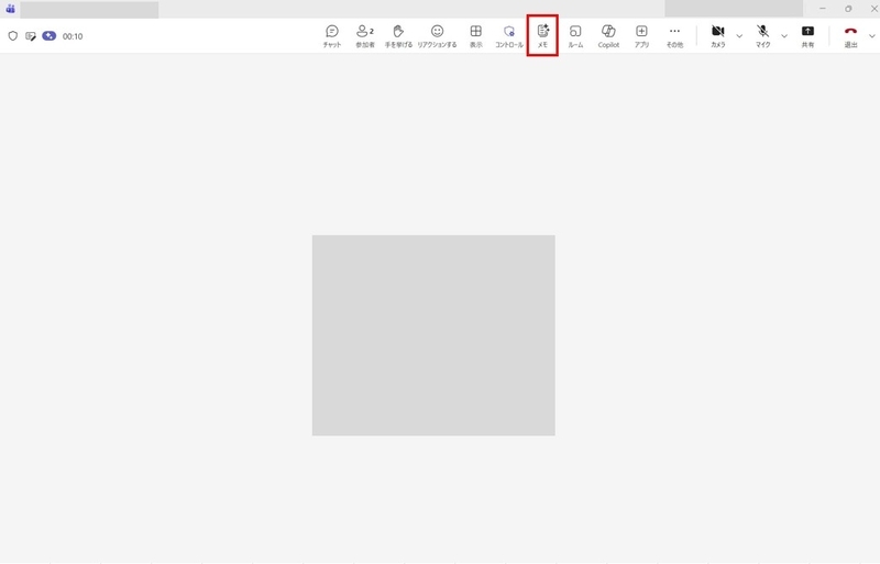 ファシリテーターエージェントを有効化した会議に入り、画面上部の[メモ]をクリックします。