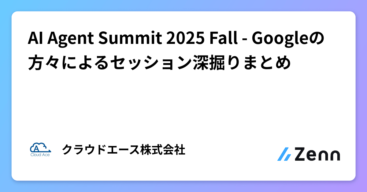 AI Agent Summit 2025 Fall で発表された Google の方々によるセッションを紹介しました。