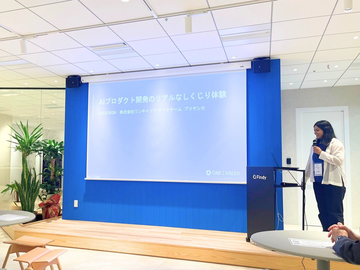 「プロダクトマネージャーLT Night」に、弊社AI PdMのプリヤンカがLT登壇しました!グローバルなバックグラウンドを持つ彼女ならではの視点で、AIプロダクトマネジメントの現場についてお話ししました。