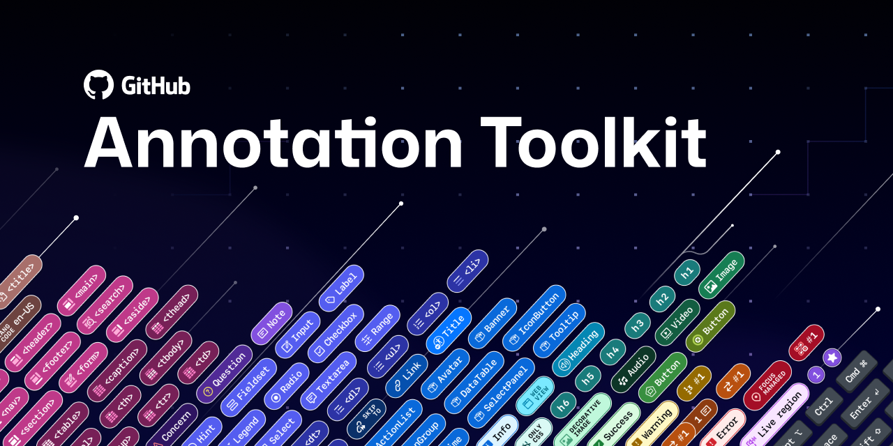 The GitHub Annotation Toolkit is a Figma asset library packed with components to help you organize your design canvas, diagram UI anatomy, and annotate accessibility details. Whether you’re a designer, developer, or product manager, this toolkit meets you where you are—you don’t need to be an accessibility expert. It’s flexible enough to document broad accessibility considerations or dig into the fine details of complex components.
