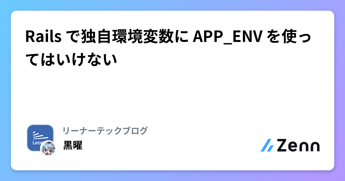 そこで RAILS_ENV = development は開発者のローカル開発時の設定に寄せ、クラウドにデプロイされる本番環境・ステージング環境・開発環境はいずれも RAILS_ENV = production にしたうえで、独自の APP_ENVleaner_dev, leaner_stg, leaner_prd とすることで読み込む設定を切り替えるようにしていました。