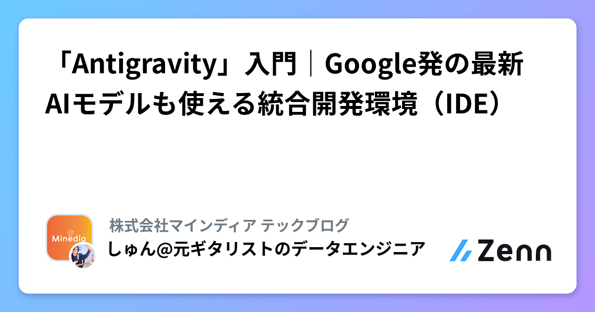 「Antigravity」入門|Google発の最新AIモデルも使える統合開発環境(IDE) | 株式会社マインディア テックブログのフィード