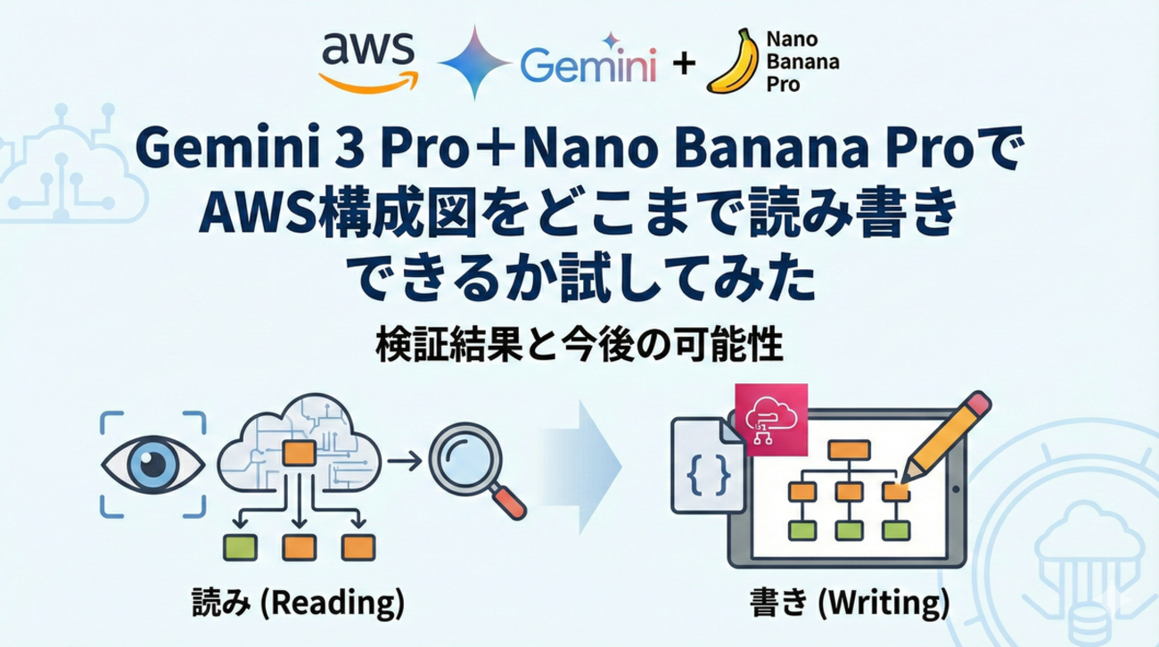 今回は、話題のGemini 3 ProとNano Banana Proを組み合わせて、AWS構成図の「読み書き」がどこまで可能かを検証しました。