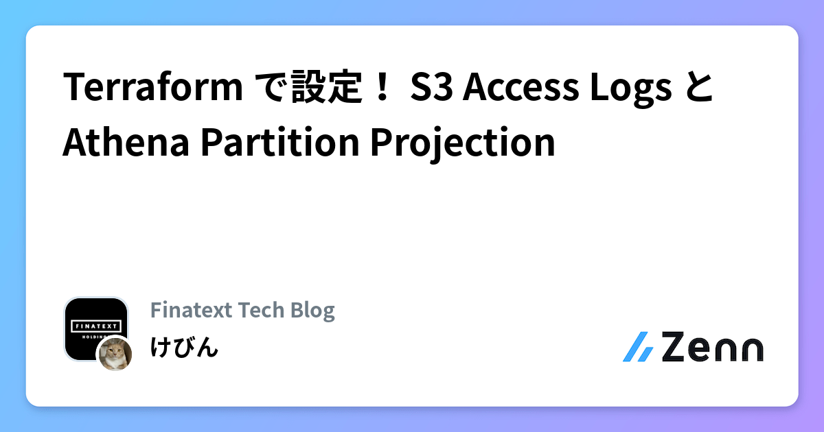 Terraform で設定! S3 Access Logs と Athena Partition Projection | Finatext Tech Blogのフィード