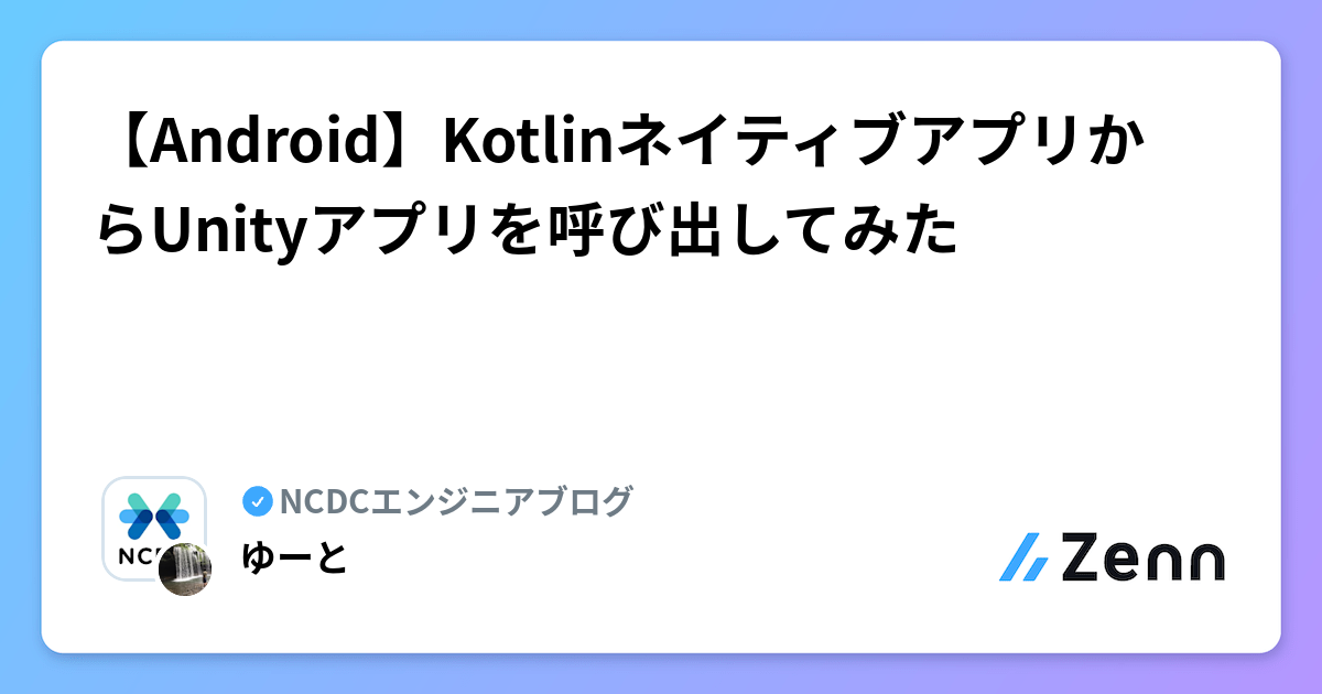 【Android】KotlinネイティブアプリからUnityアプリを呼び出してみた | NCDCエンジニアブログのフィード