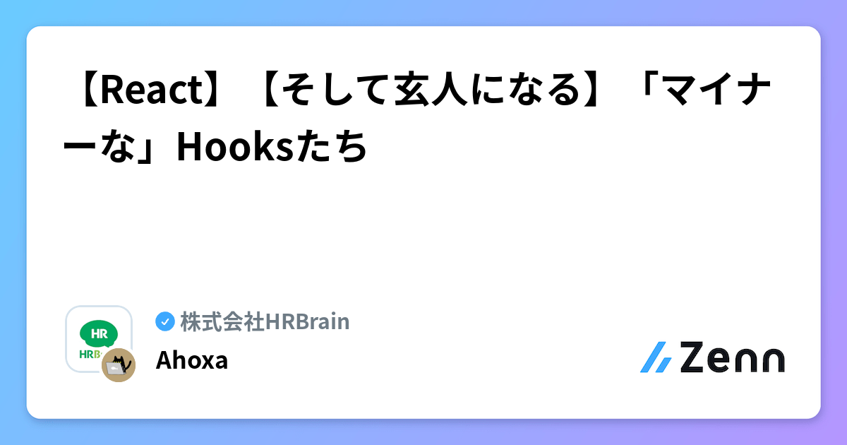 【React】【そして玄人になる】「マイナーな」Hooksたち | 株式会社HRBrainのフィード