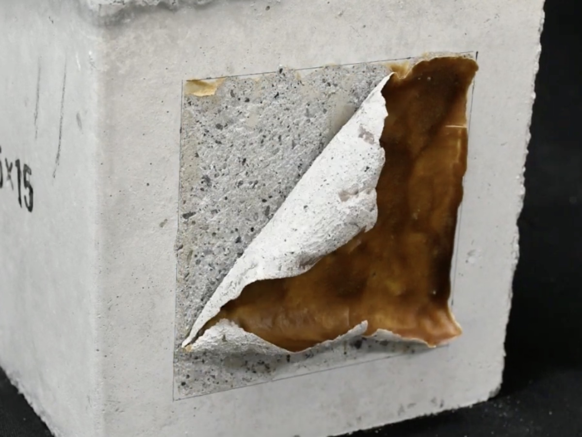 この剥離除去技術の性能評価では、鋼板のサビ、ステンレス板の水性ペイントを除去可能であることを確認。さらにコンクリート表面では、表層を数十~数百μmの深さで除去できることも判明し、いずれの評価においても塗膜は対象物を閉じ込めて自己剥離したという。