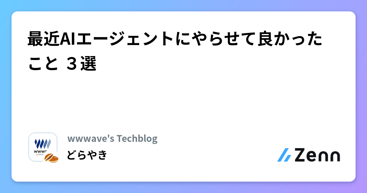 最近AIエージェントにやらせて良かったこと 3選 | wwwave's Techblogのフィード