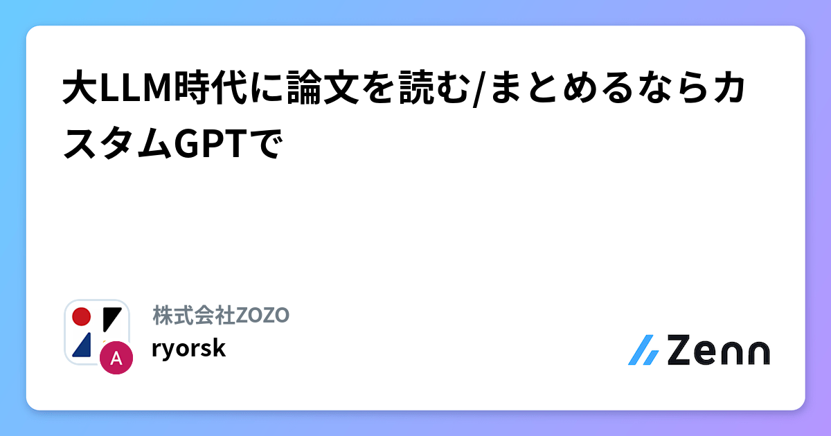 大LLM時代に論文を読む/まとめるならカスタムGPTで | 株式会社ZOZOのフィード