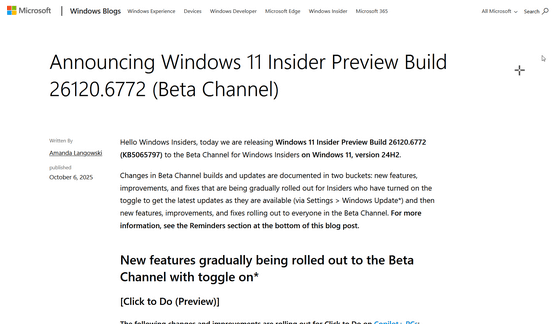 https://blogs.windows.com/windows-insider/2025/10/06/announcing-windows-11-insider-preview-build-26120-6772-beta-channel/