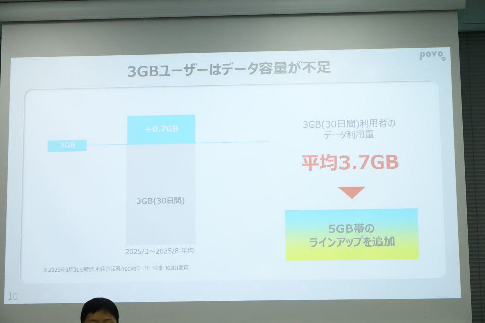 定番となっている「3GB/30日間」は変わらず利用できる。3GBと新設される5GBは、利用期間は同じで容量も近しい。新たに「いつものトッピング」として用意される理由は、3GBユーザーのデータ利用量の増加にあると、KDDI Digital Life COOの中山理賀氏は説明する。
