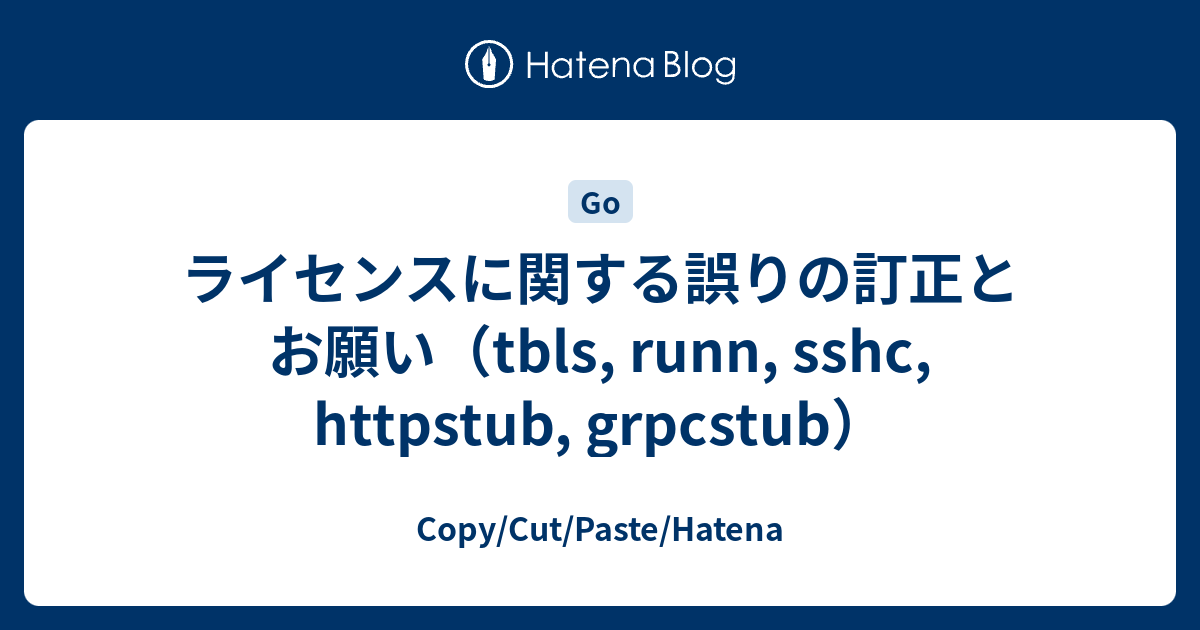ライセンスに関する誤りの訂正とお願い(tbls, runn, sshc, httpstub, grpcstub) – Copy/Cut/Paste/Hatena