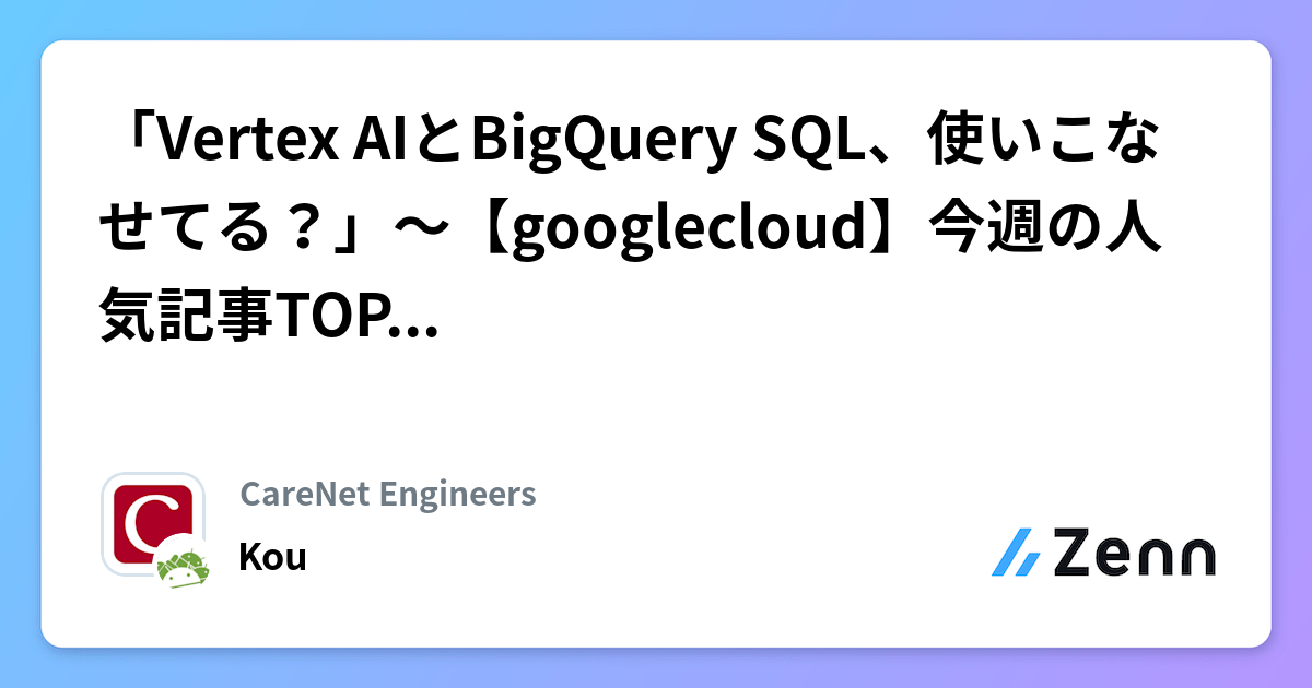 「Vertex AIとBigQuery SQL、使いこなせてる?」~【googlecloud】今週の人気記事TOP5(2025/10/05)