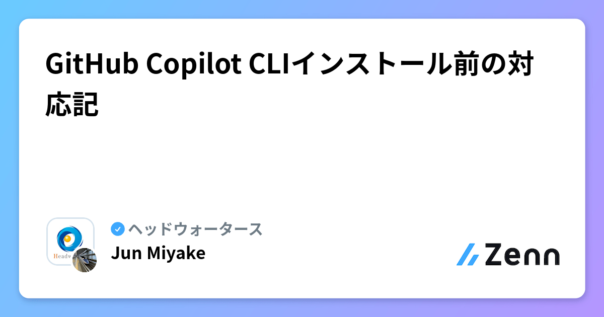 “GitHub Copilot CLI”をインストールして、検証については前の記事を参考にしてください。