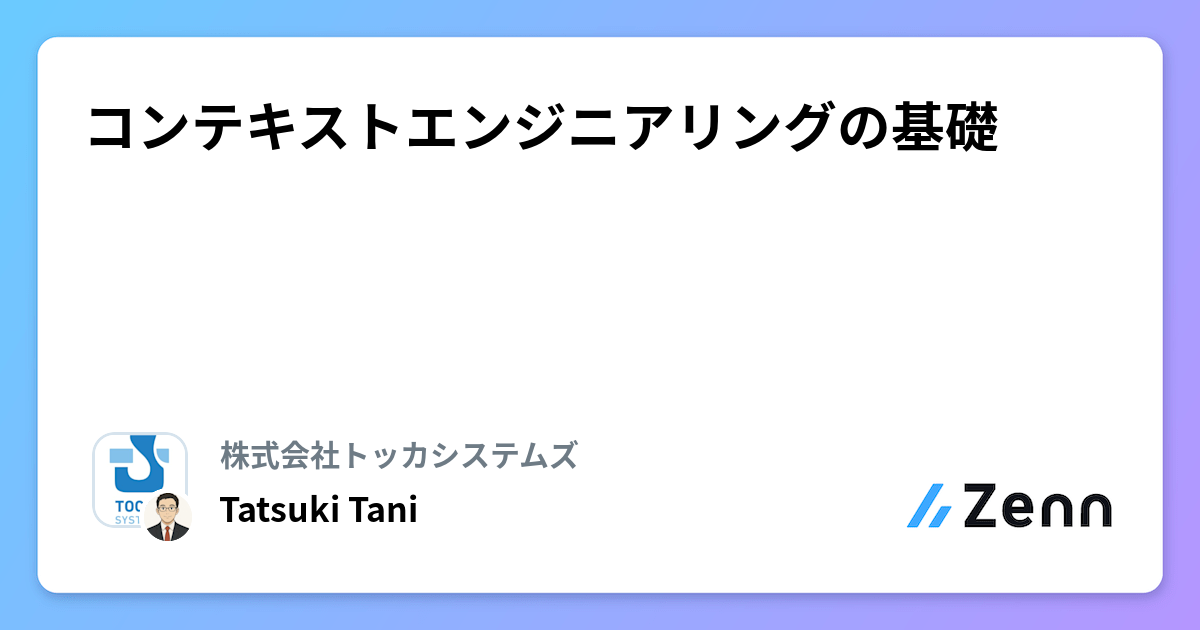 コンテキストエンジニアリングの基礎 | 株式会社トッカシステムズのフィード