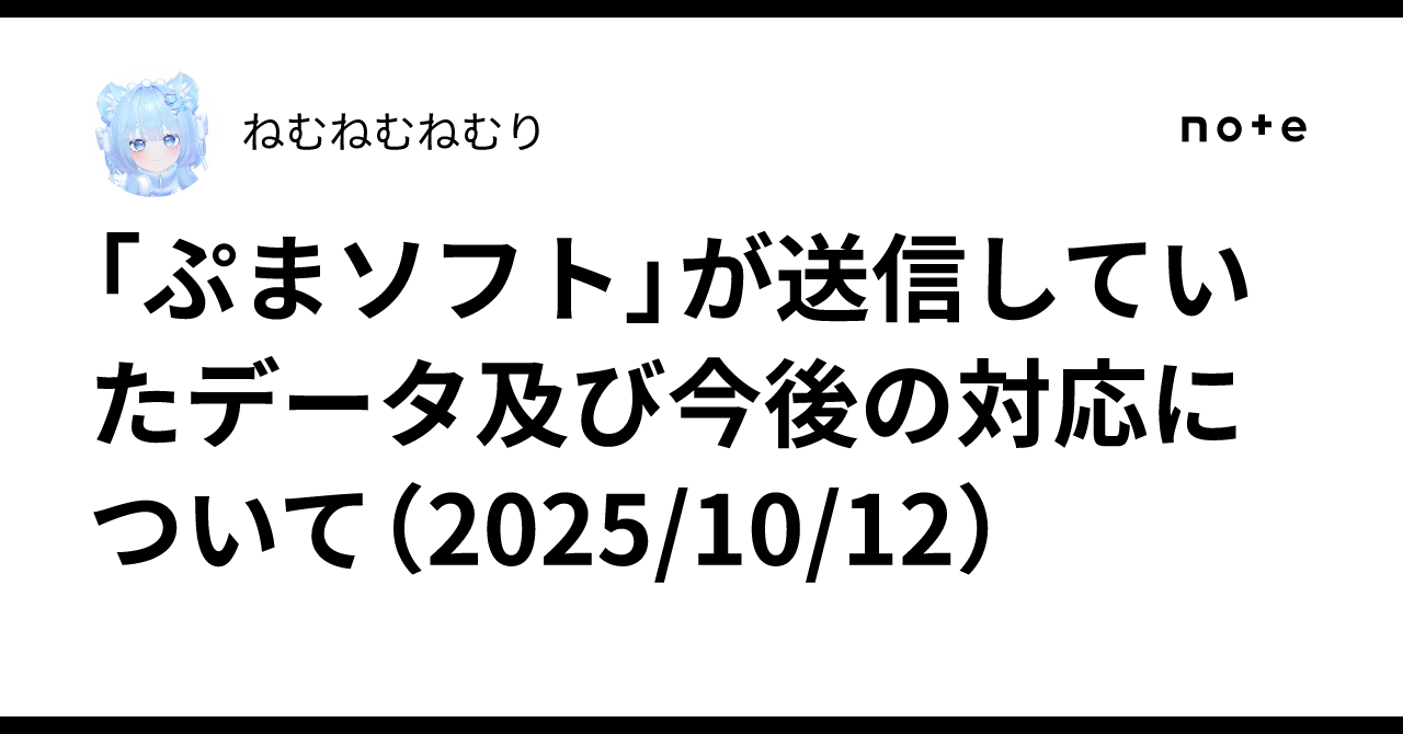 「ぷまソフト」が送信していたデータ及び今後の対応について(2025/10/12)|ねむねむねむり