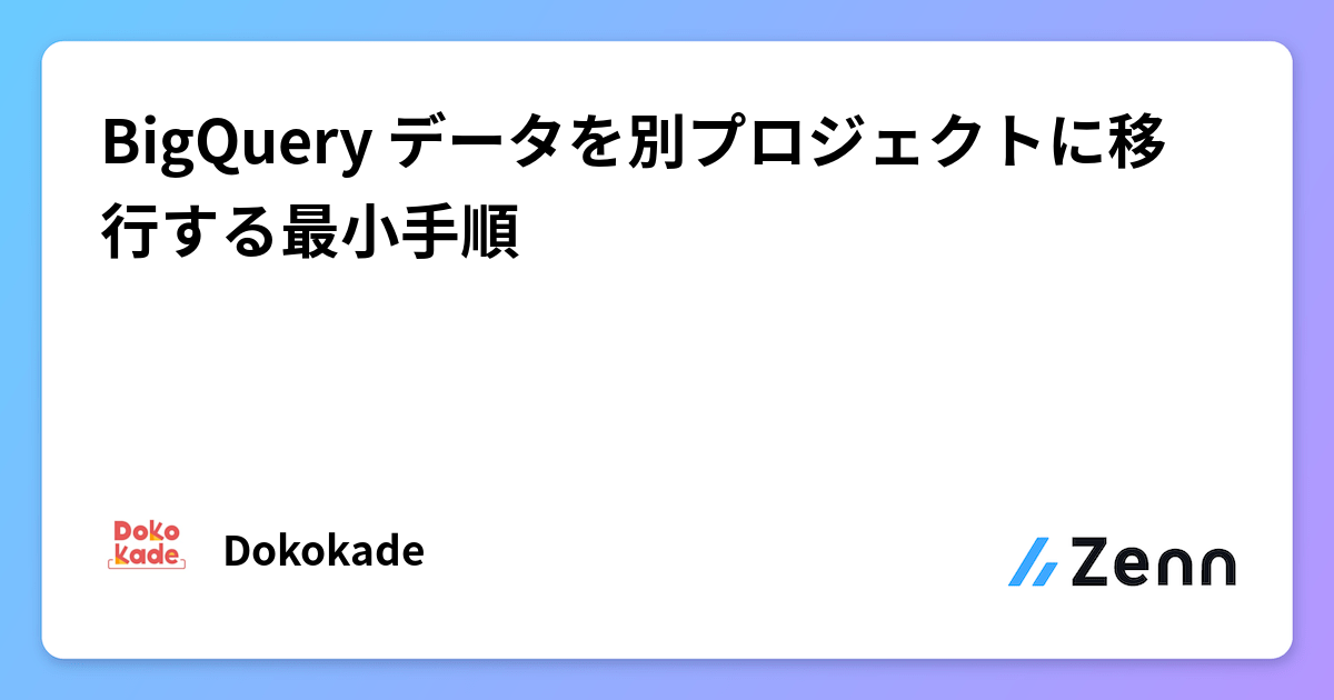 今回、むかーしから使っているGoogleアカウントから法人のGoogleアカウントに変えまして、その際GCPまわりをいろいろ移行したんですが、BigQueryも移行したので、その時の手順になります。