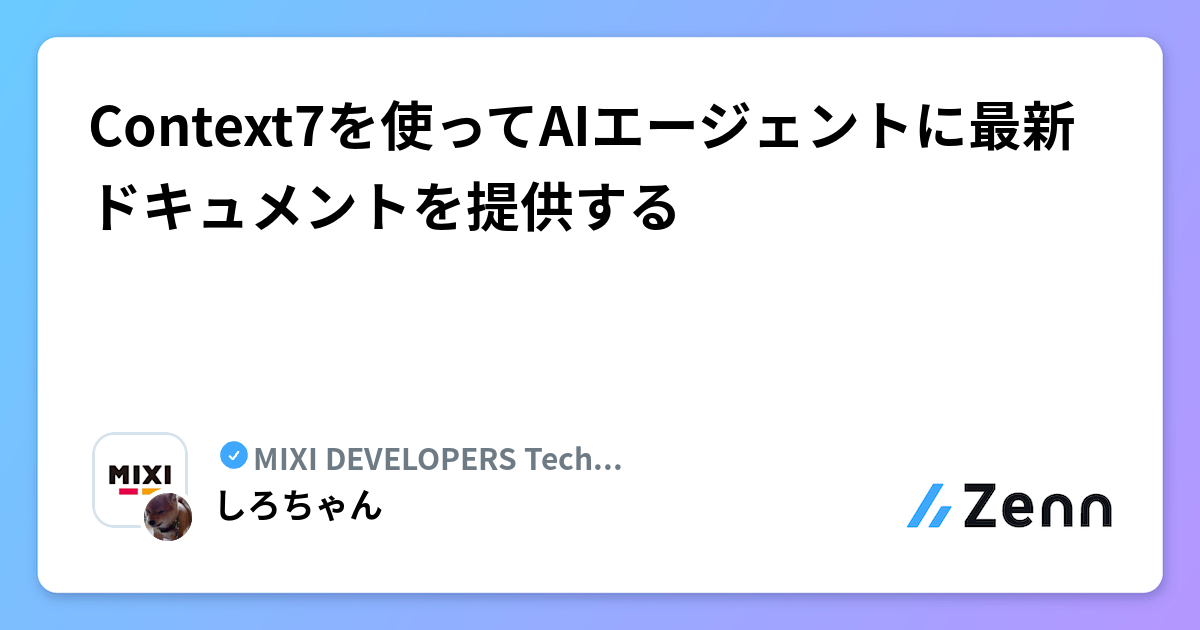 Context7を使ってAIエージェントに最新ドキュメントを提供する | MIXI DEVELOPERS Tech Blogのフィード