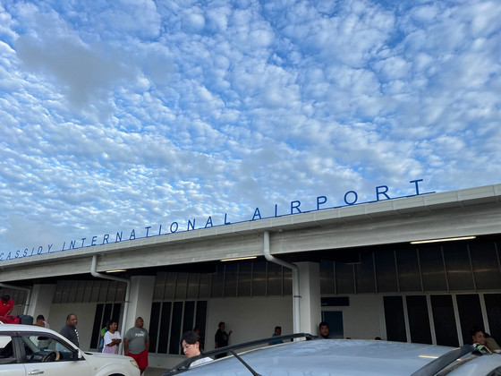 フィジーのナンディ国際空港を現地時間23時30分に出発。約4時間30分のフライトで、フィジーと2時間の時差があるキリバスのカシディ国際空港へ朝6時半ごろ到着しました。