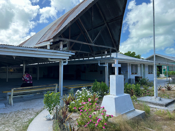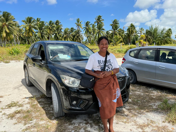 キリバスにはレンタカー会社がないので、あらかじめ「アイランドディスカバリーツアー」を予約しておきました。費用は1名あたり250AUD(約2万4200円)。空港を出ると、普段は小学校の先生をしているというガイドの女性が待っていました。7時10分、出発です。