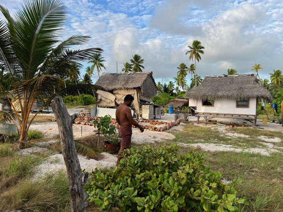 島にはサンゴ礁が侵食されて、くぼ地に海水が入り込んでできた数百の塩湖があります。キリバス政府が運営する塩採取施設に行ってみましょう。