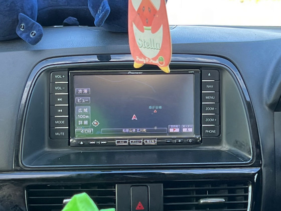 車は日本で活躍してキリバスに渡ったマツダのSUV。カーナビを見ると、和歌山県広川町を走行中ということになっていました。こうしたカーナビ表示は「ドメイン島巡りあるある」です。