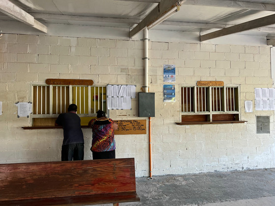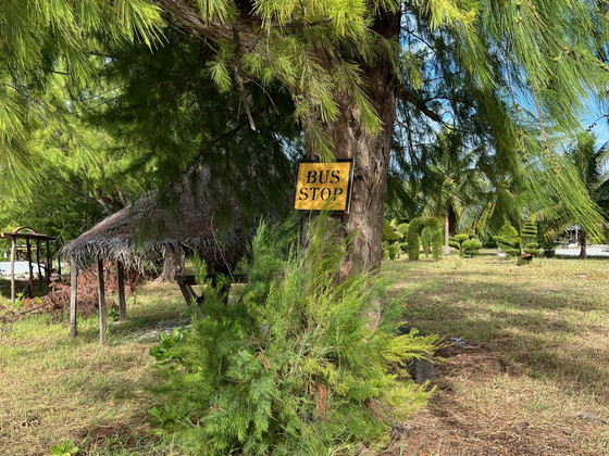 ロンドン村とバナナ村の間にはミニバスが走っていて、このようなバス停が設置されています。運賃は1.2AUD(約116円)。